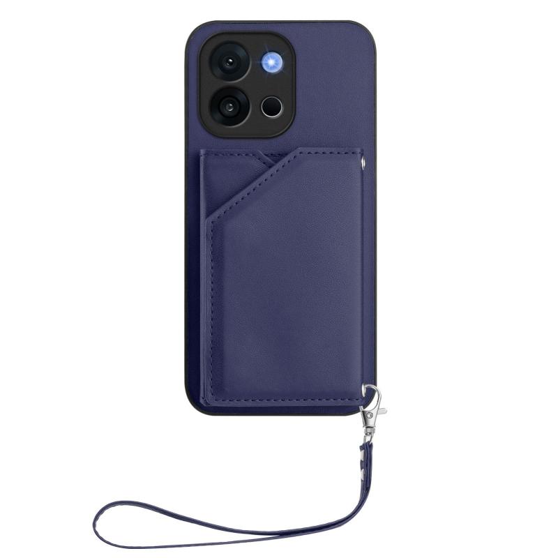 For OnePlus 13T Skin Feel Four Card Slots Phone Case with Wrist Strap(Blue)
