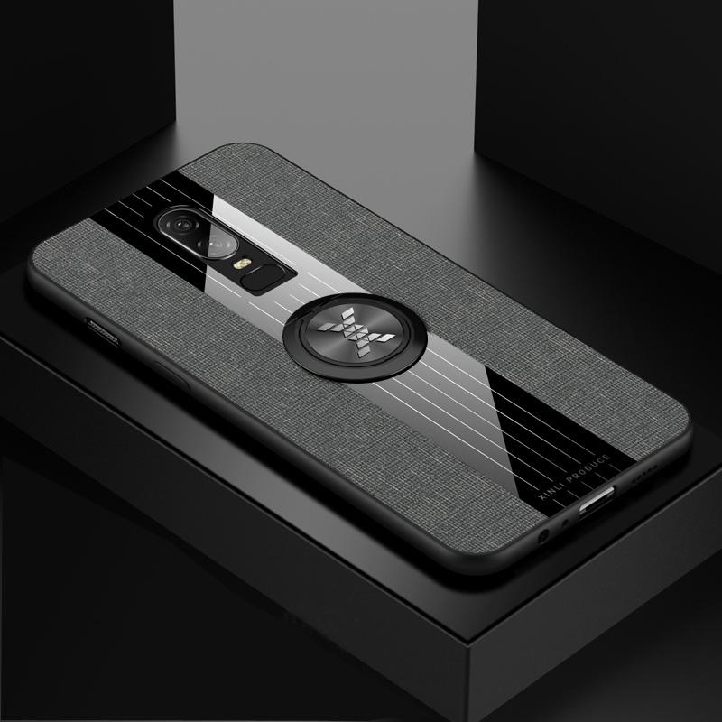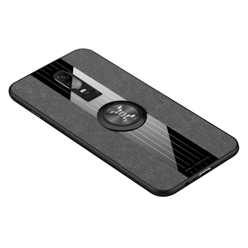 For OnePlus 6 XINLI Stitching Cloth Texture Shockproof TPU Protective Case with Ring Holder(Grey) (XINLI)