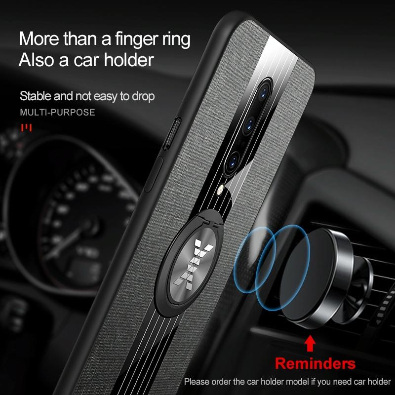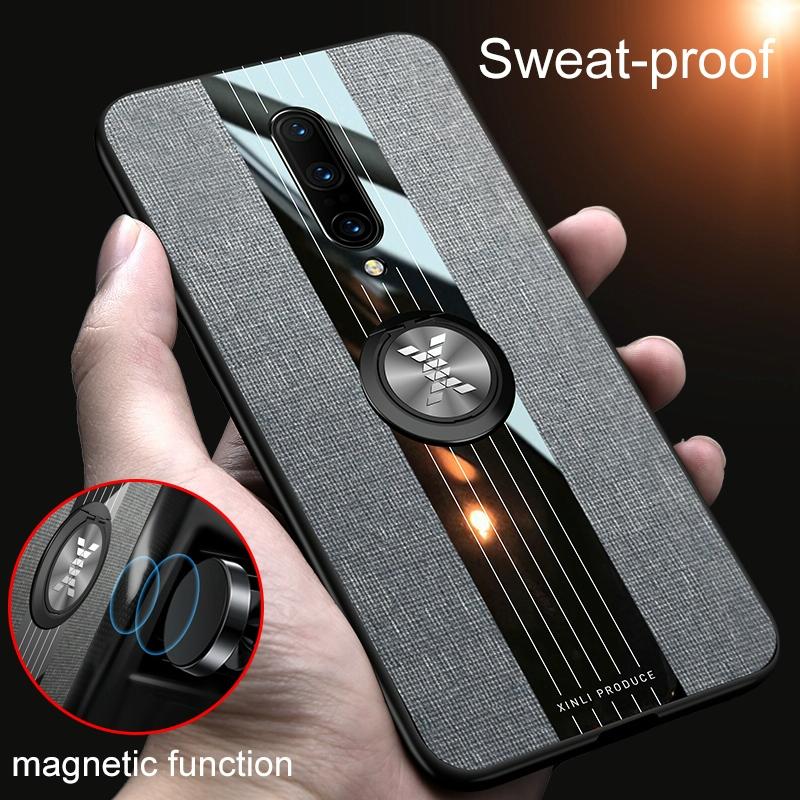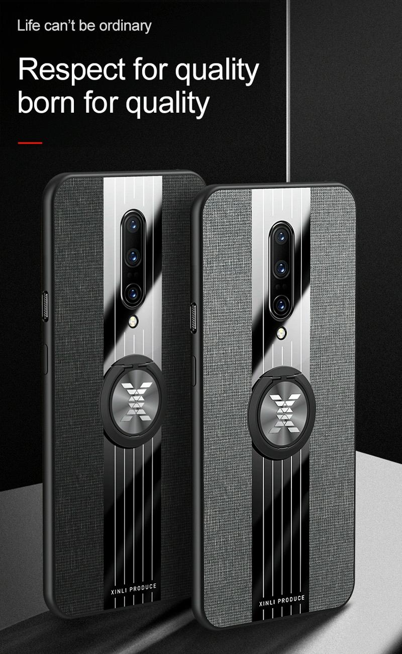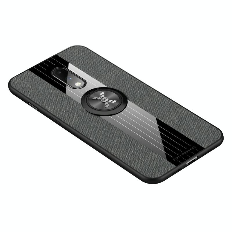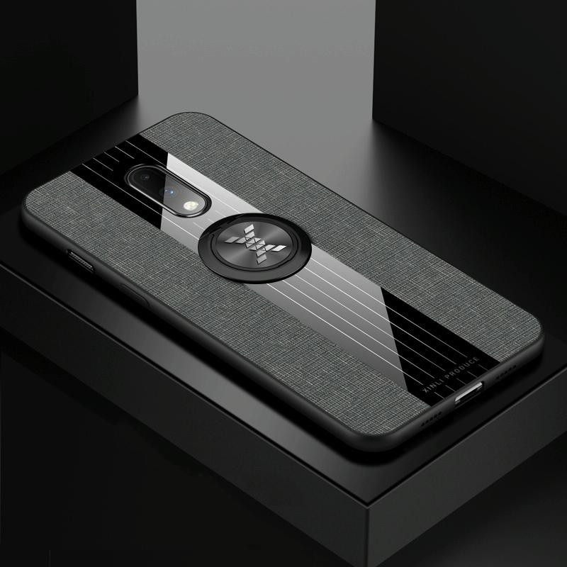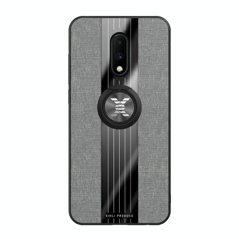 For OnePlus 6T XINLI Stitching Cloth Texture Shockproof TPU Protective Case with Ring Holder(Grey) (XINLI)