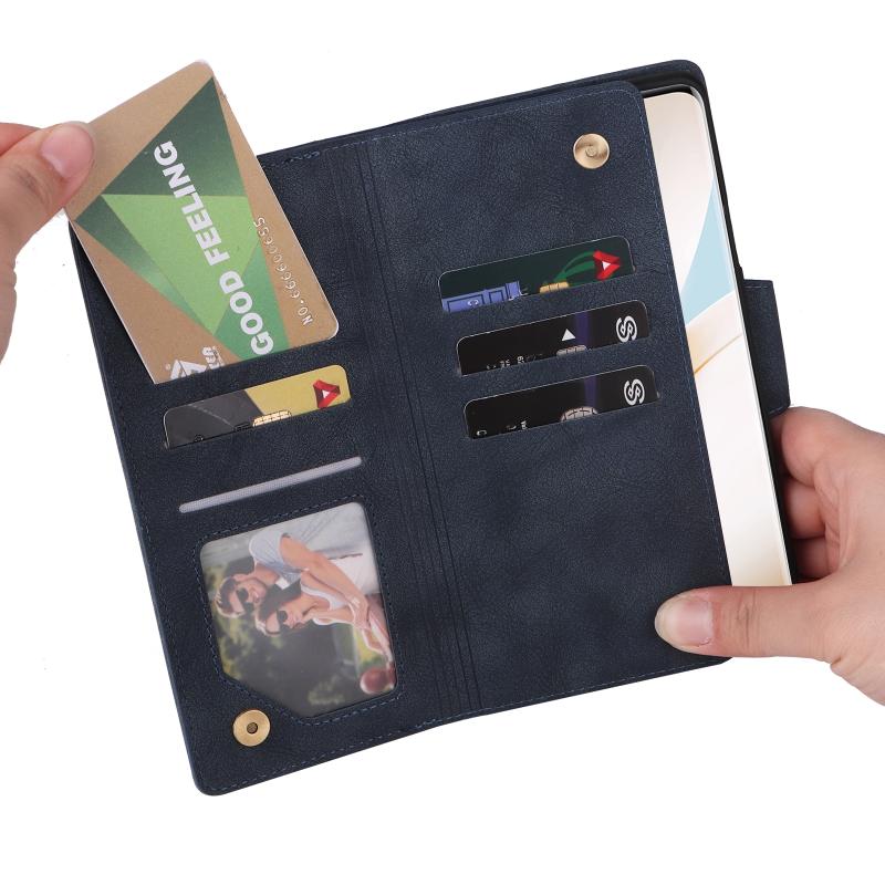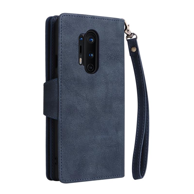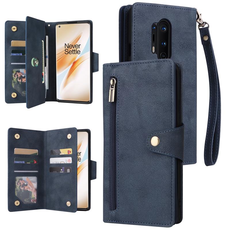 For OnePlus 8 Pro Rivet Buckle 9 Cards Three Fold Leather Phone Case(Blue)