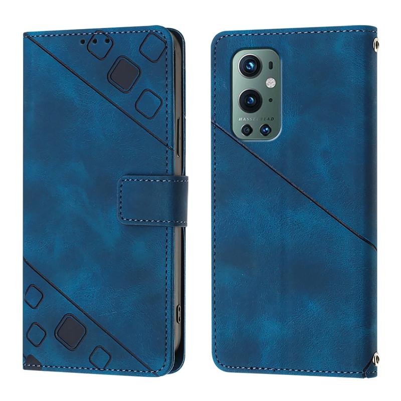 For OnePlus 9 Pro Skin-feel Embossed Leather Phone Case(Blue)