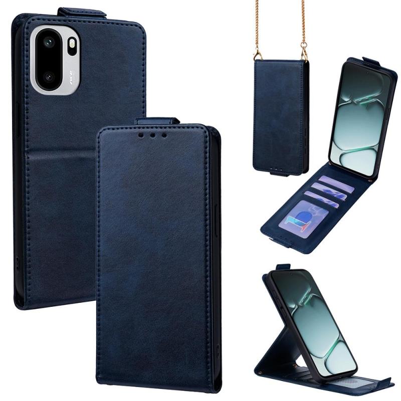 For OnePlus Ace 6 Vertical Flip Cover Solid Color Vegan Leather Phone Case with Crossbody Chain(Blue)