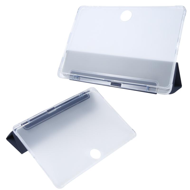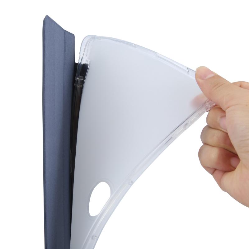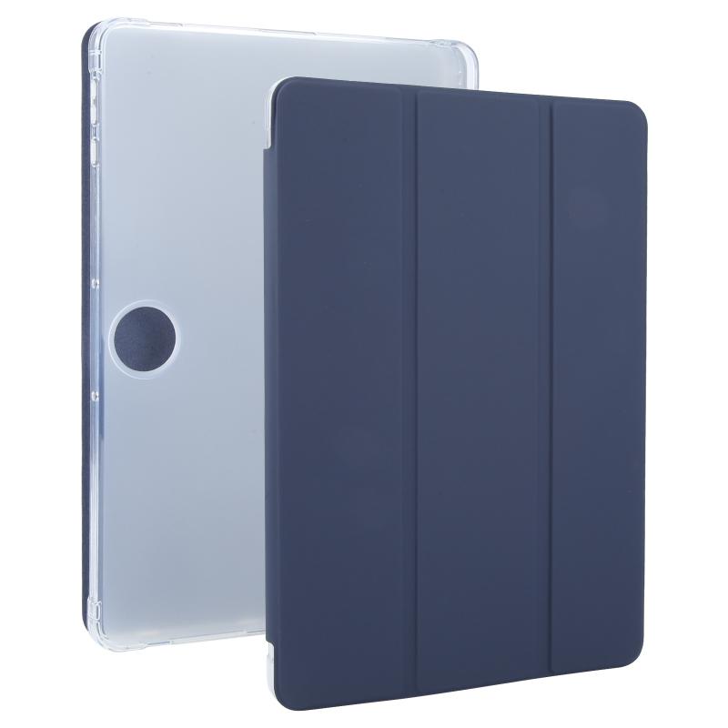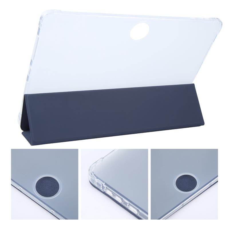 For OnePlus Pad 2 Tri-fold Clear TPU Smart Leather Tablet Case with Pen Slot(Dark Blue)
