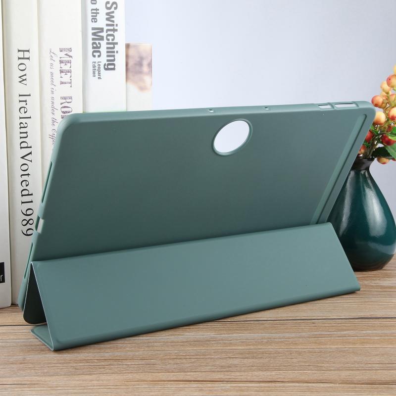 For OnePlus Pad 2 Tri-fold Silicone Leather Tablet Case(Dark Green)