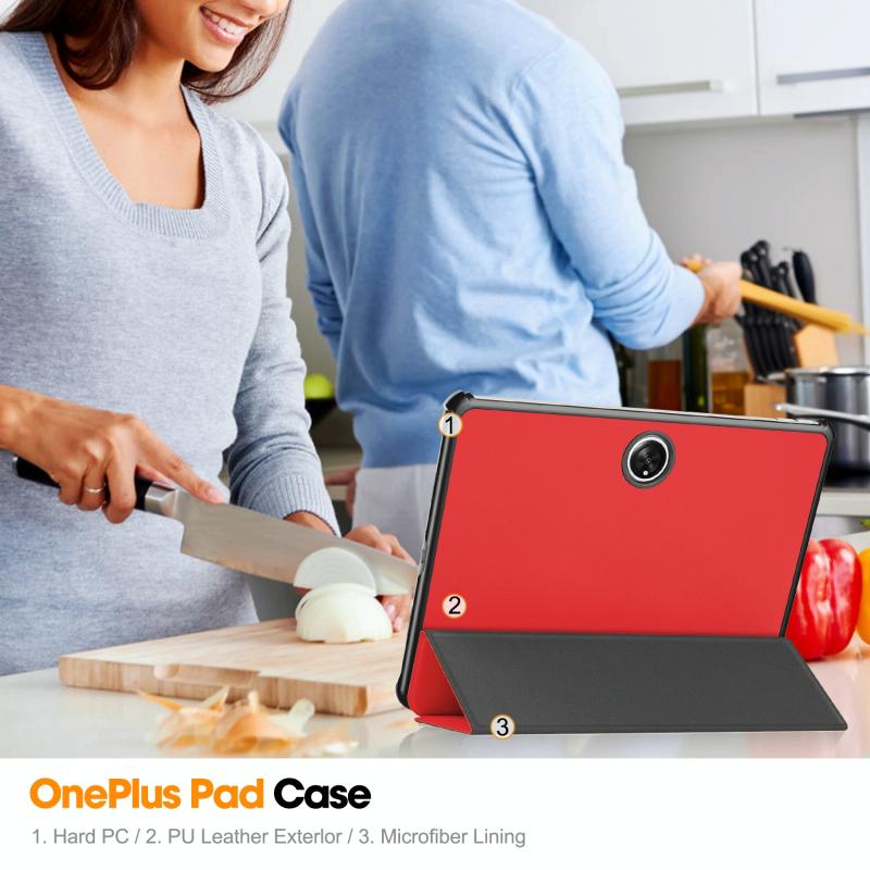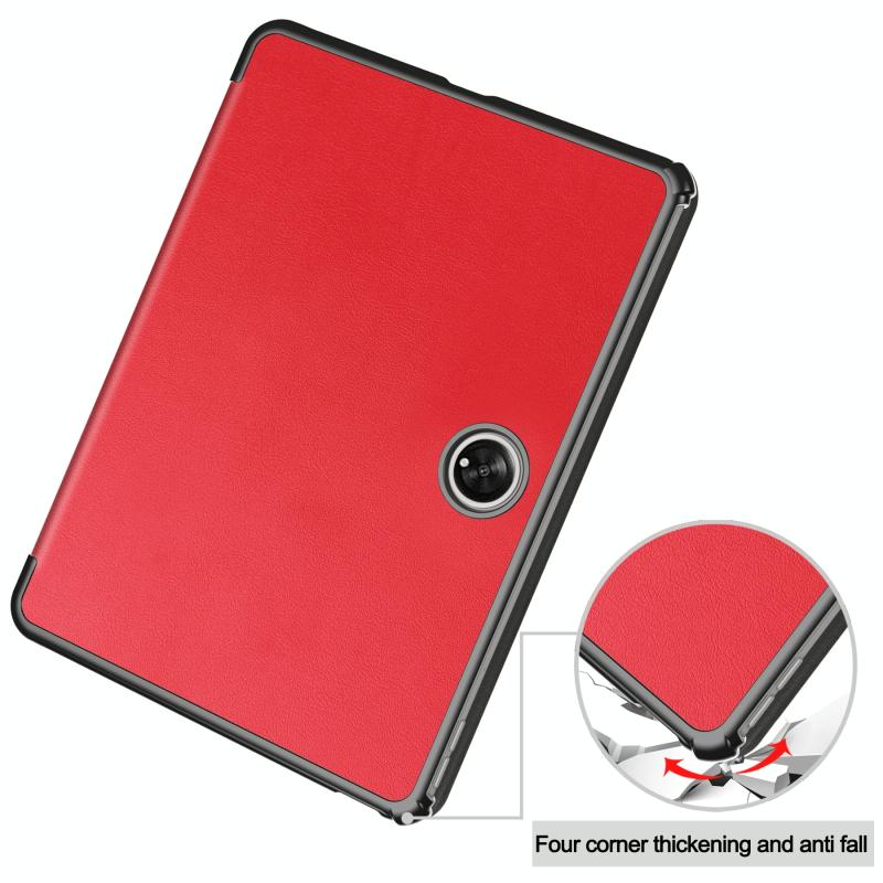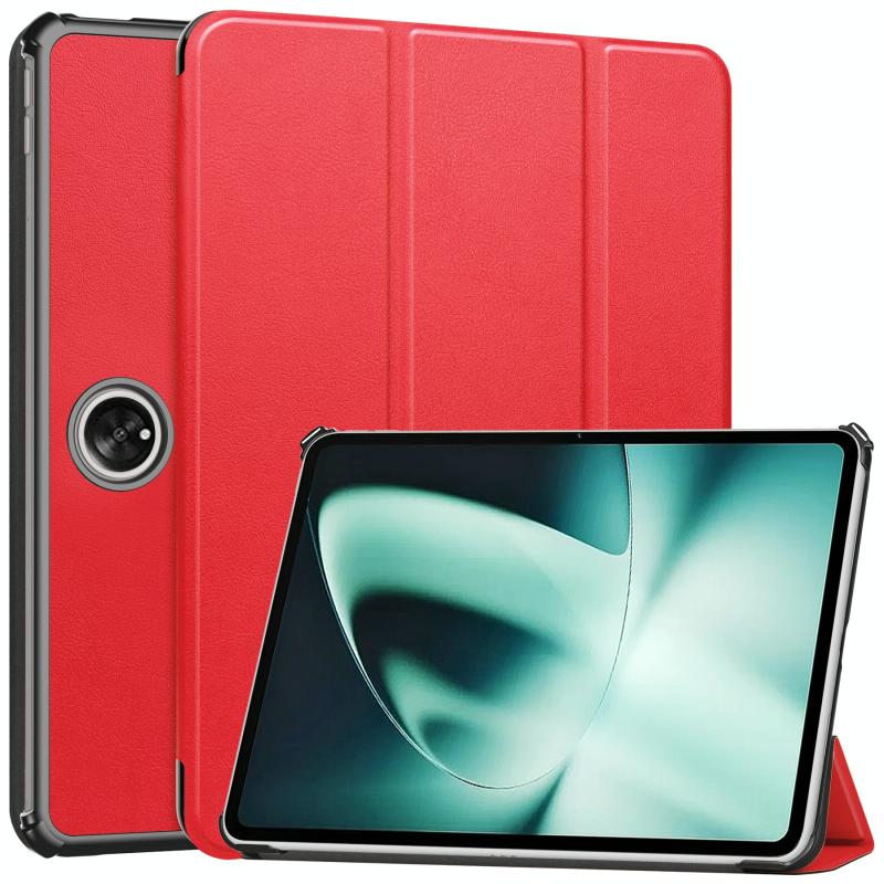For OnePlus Pad Custer Pure Color 3-Fold Holder Smart Leather Tablet Case(Red)