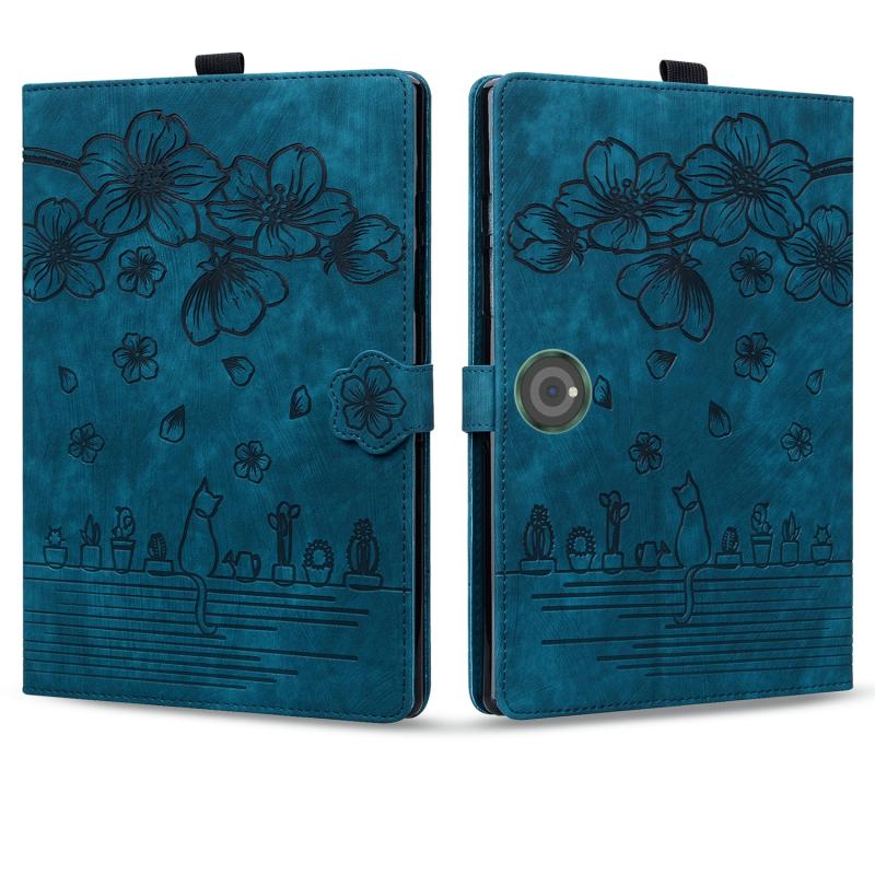 For OnePlus Pad / Pad Pro 12.1 Cartoon Sakura Cat Embossed Leather Tablet Case(Blue)