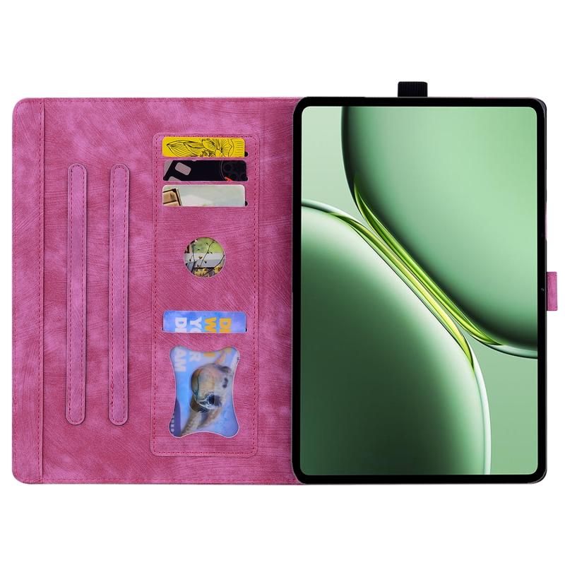 For OnePlus Pad / Pad Pro 12.1 Cartoon Sakura Cat Embossed Leather Tablet Case(Rose Red)