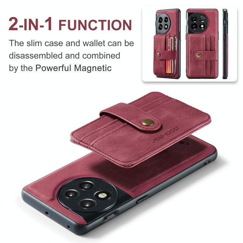 For OnePuls 11 JEEHOOD RFID Blocking Anti-Theft Magnetic PU Phone Case(Red) (JEEHOOD)