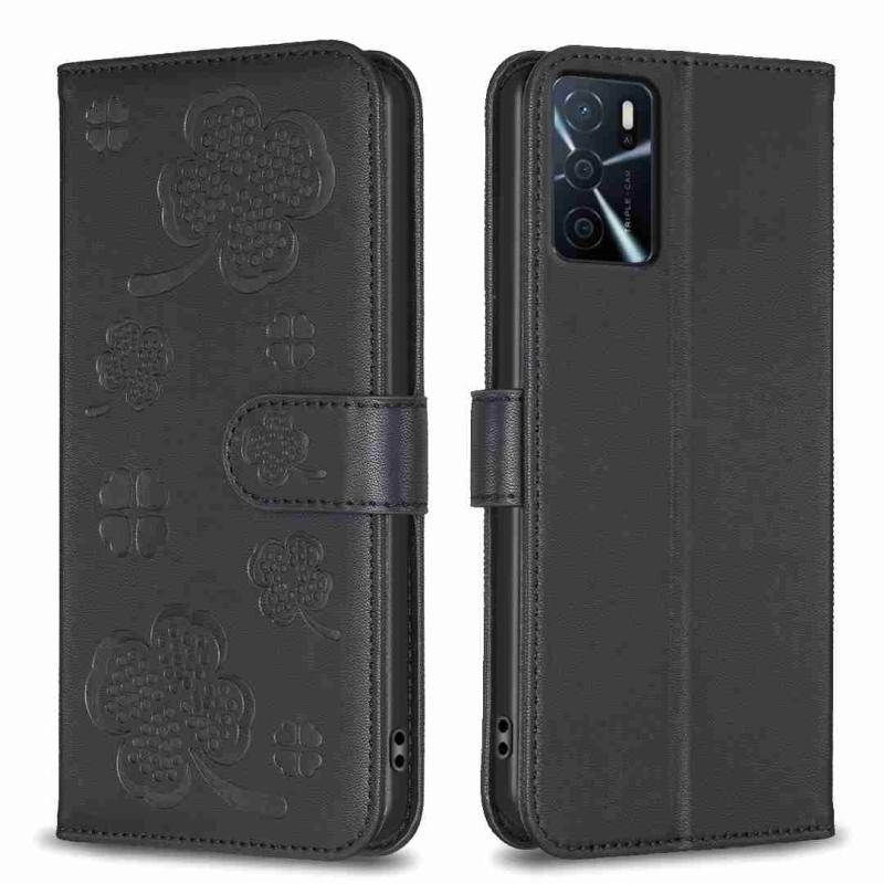 For OPPO A16 / A16s / A54s Four-leaf Embossed Leather Phone Case(Black)