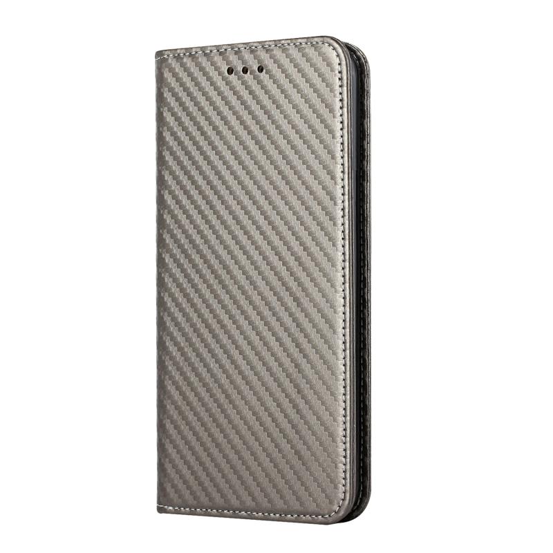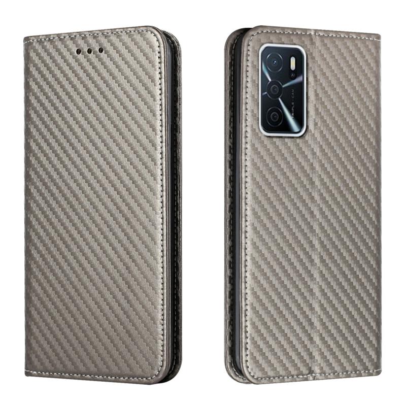 For OPPO A16 Carbon Fiber Texture Flip Holder Leather Phone Case(Grey)