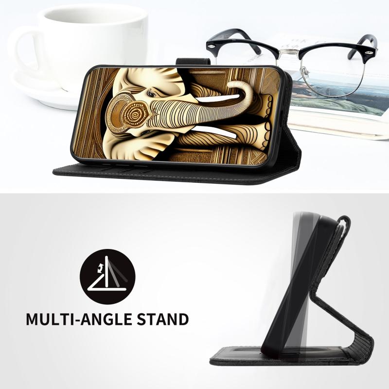 For OPPO A16 Elephant Head Embossed Phone Leather Case with Lanyard(Black)