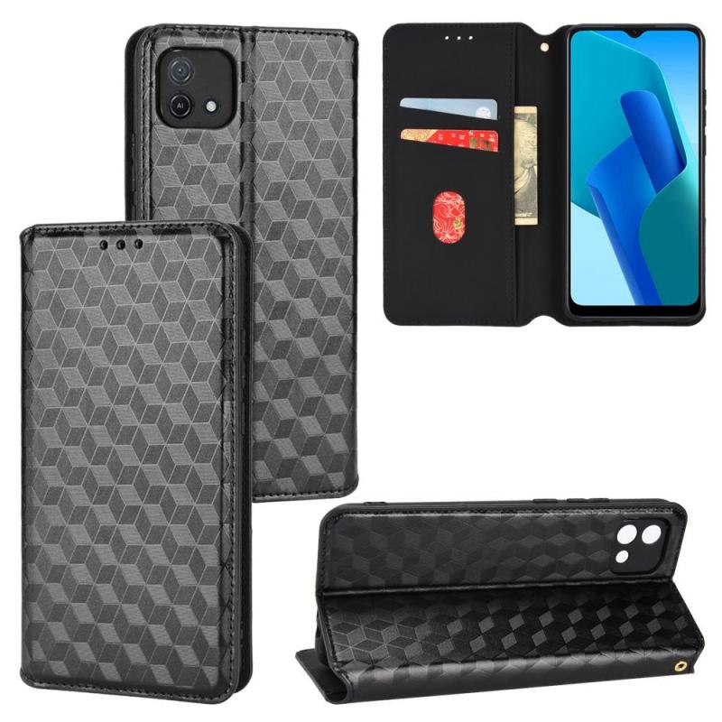 For OPPO A16K / A16e Cubic Grid Texture Flip Leather Phone Case(Black)
