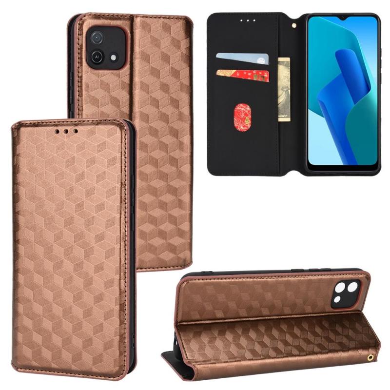 For OPPO A16K / A16e Cubic Grid Texture Flip Leather Phone Case(Brown)