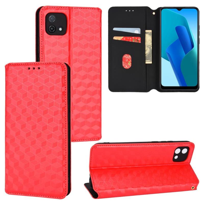 For OPPO A16K / A16e Cubic Grid Texture Flip Leather Phone Case(Red)