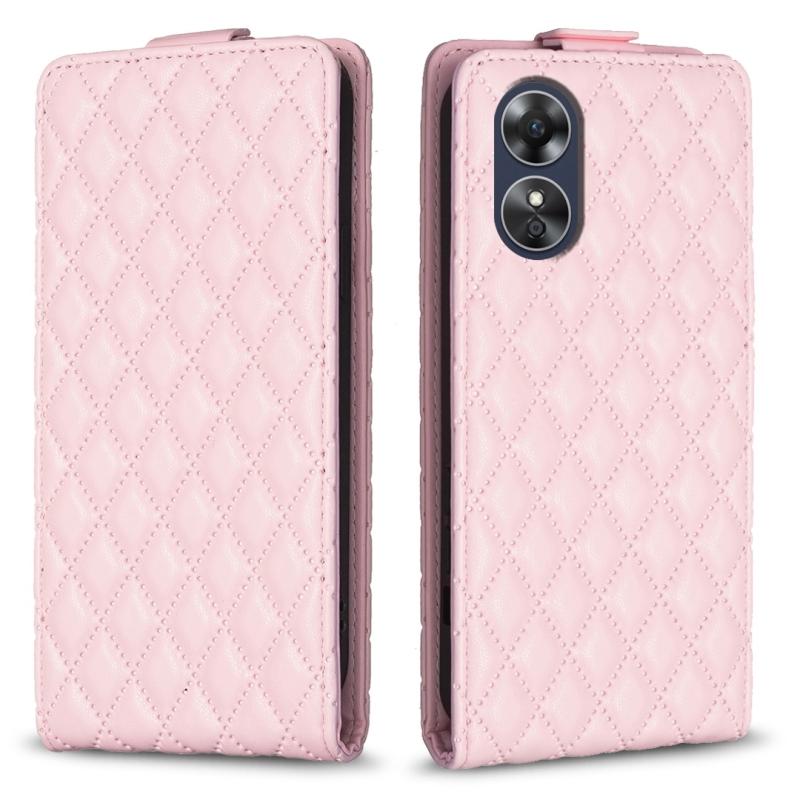 For OPPO A17 Diamond Lattice Vertical Flip Leather Phone Case(Pink)