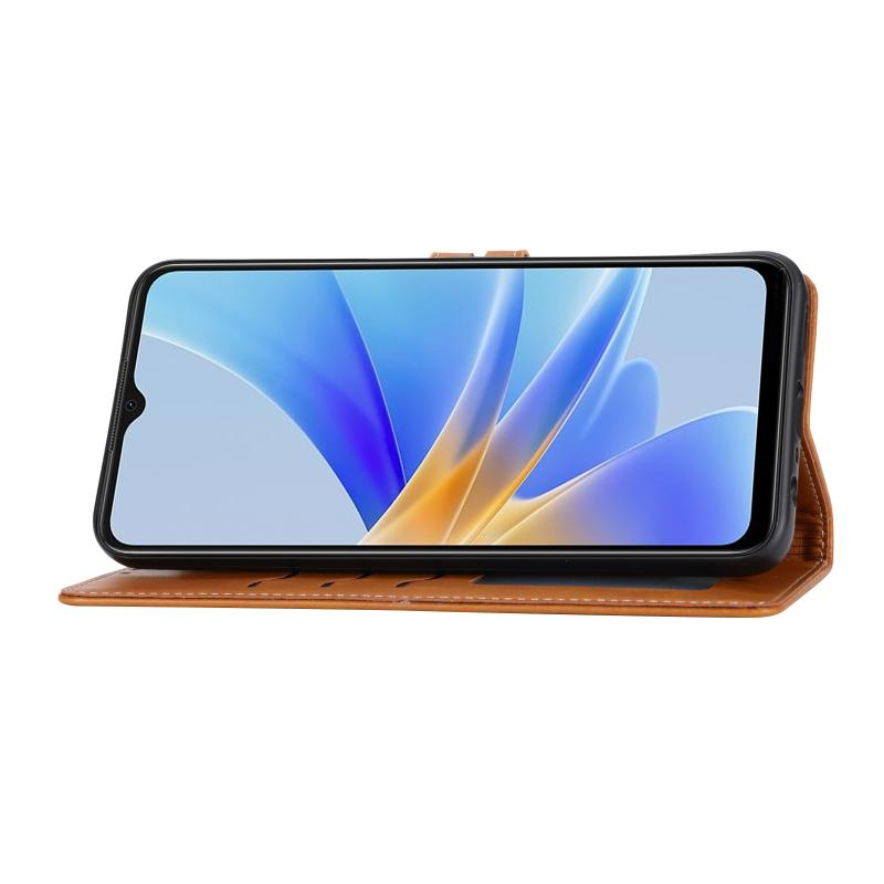 For OPPO A17 Embossed Happy Cat Pattern Flip Leather Phone Case(Yellow)