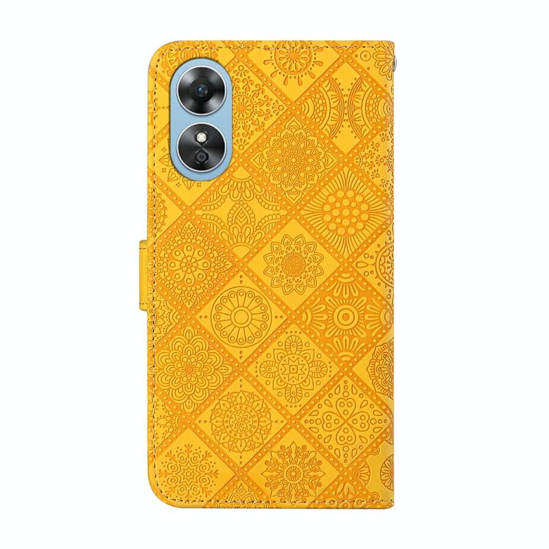 For OPPO A17 Ethnic Style Embossed Pattern Leather Phone Case(Yellow)
