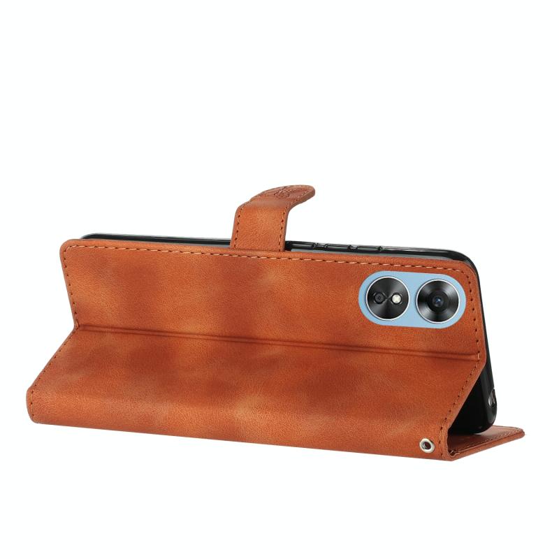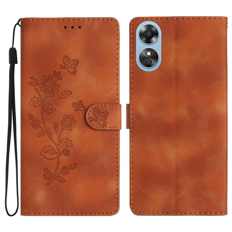 For OPPO A17 Flower Butterfly Embossing Pattern Leather Phone Case(Brown)