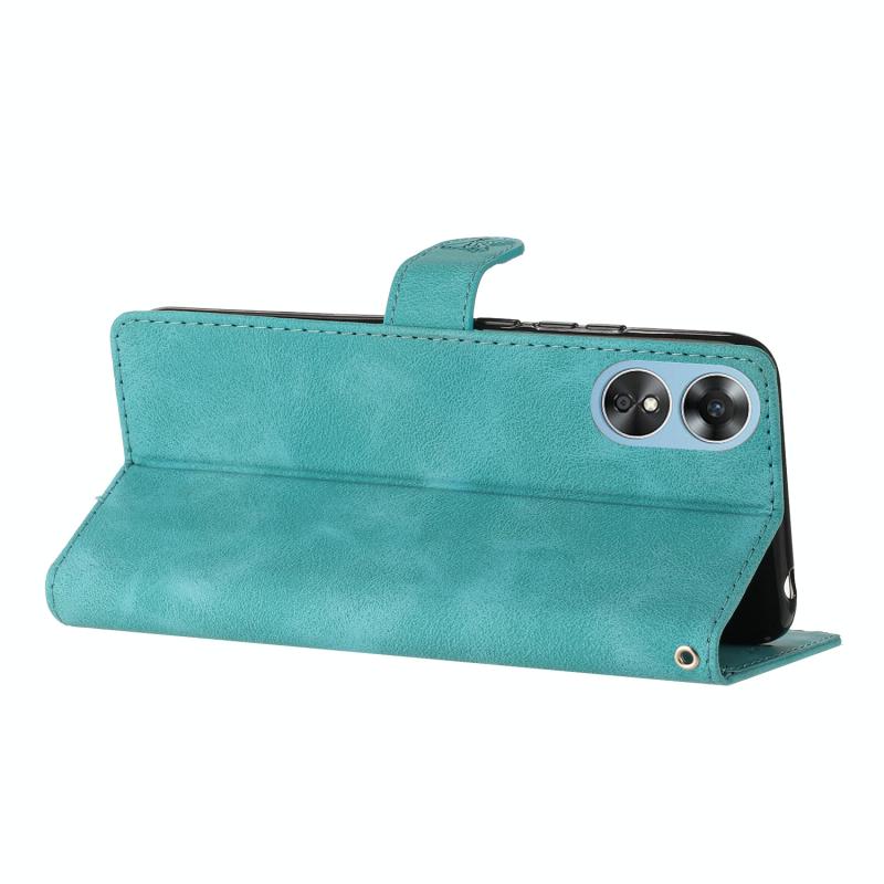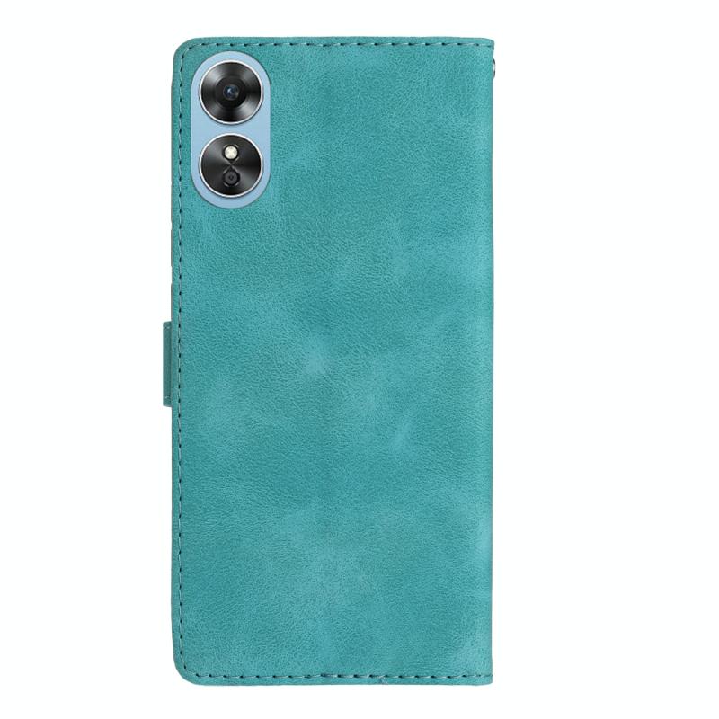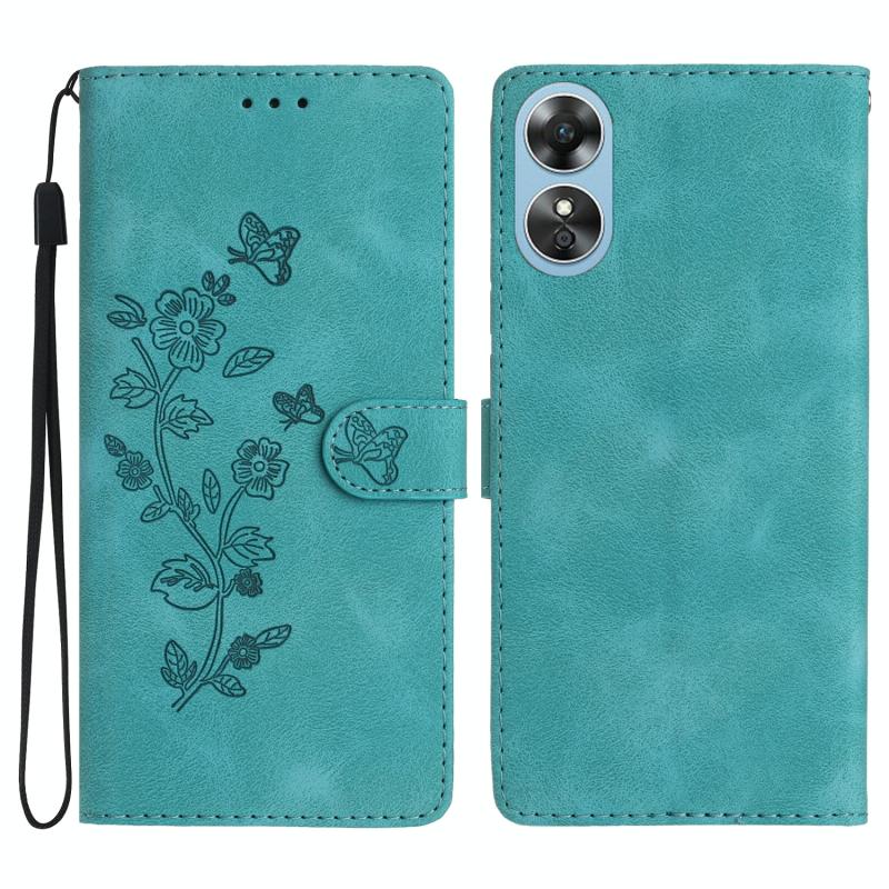 For OPPO A17 Flower Butterfly Embossing Pattern Leather Phone Case(Sky Blue)