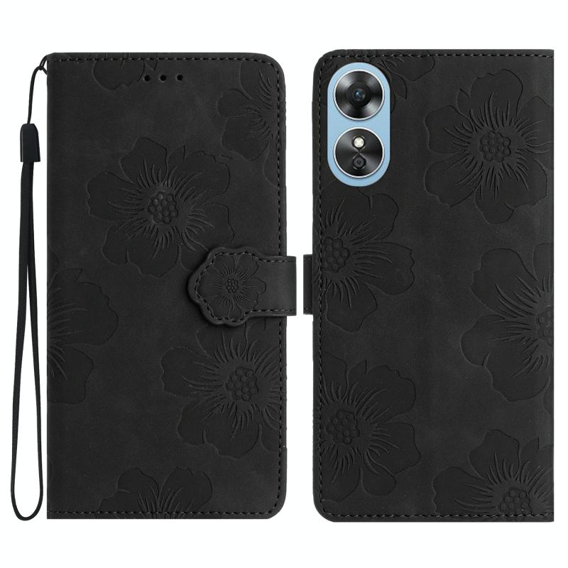 For OPPO A17 Flower Embossing Pattern Leather Phone Case(Black)
