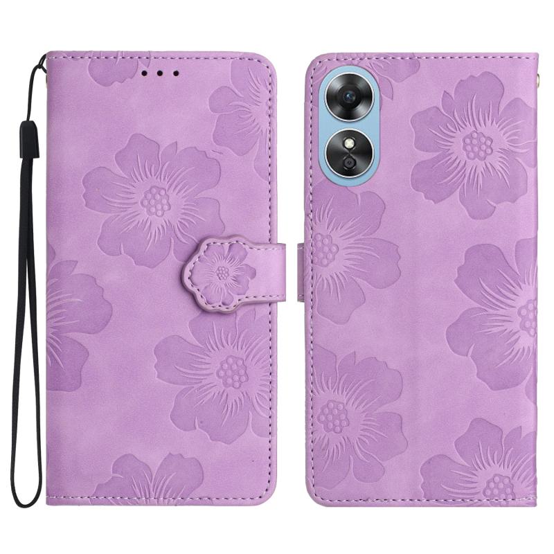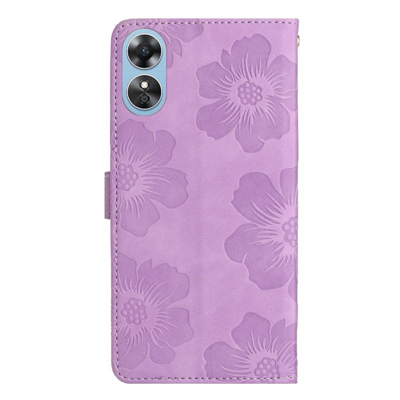 For OPPO A17 Flower Embossing Pattern Leather Phone Case(Purple)