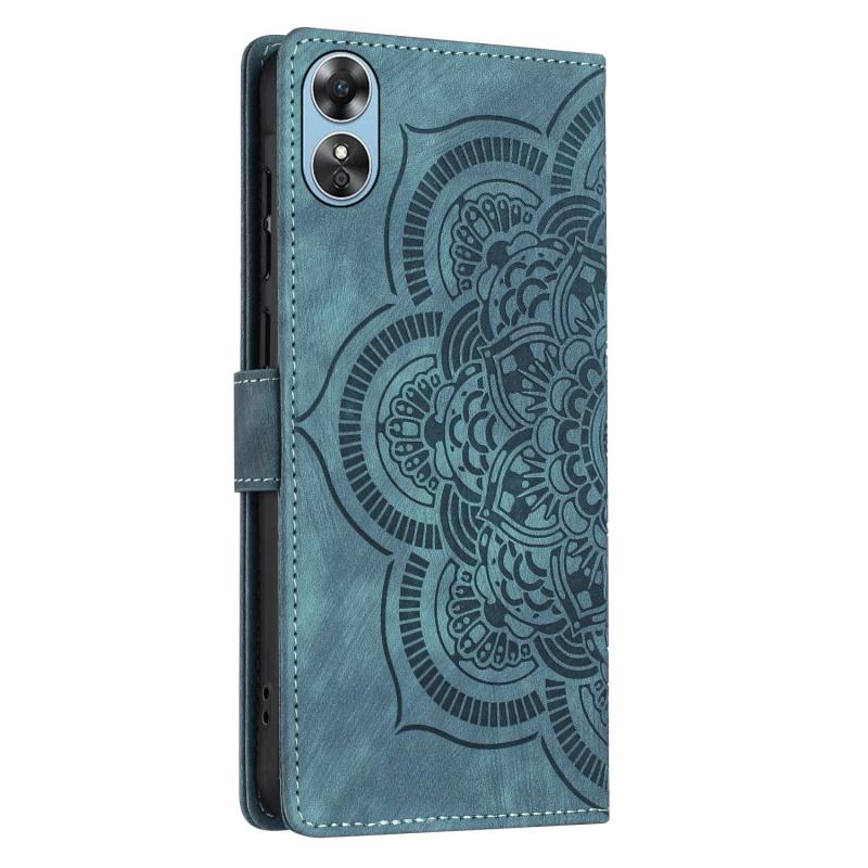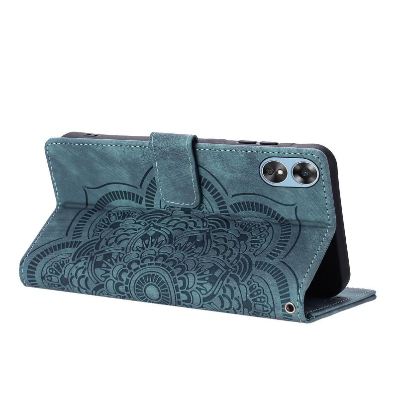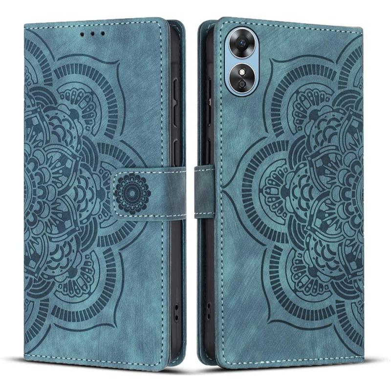 For OPPO A17 Mandala Embossed Retro Frosted Leather Phone Case(Blue)
