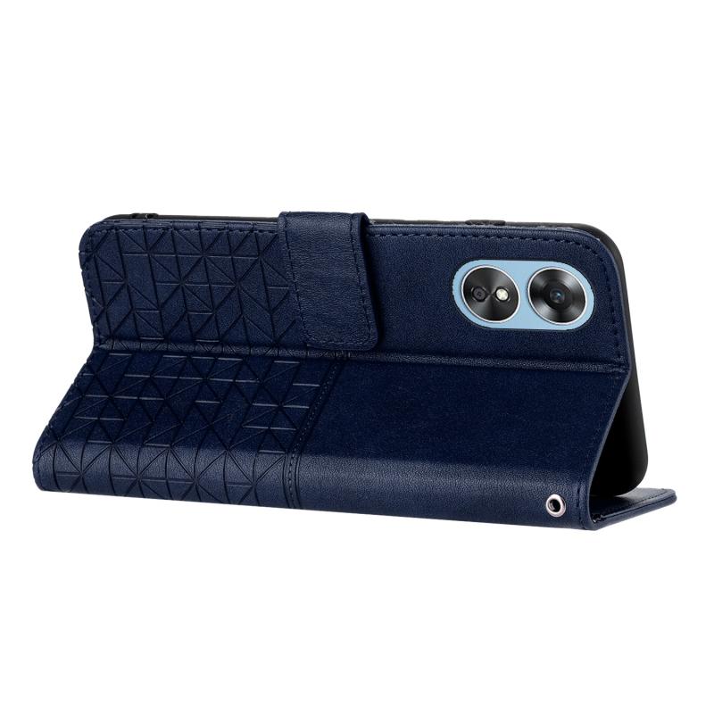For OPPO A17 Rhombic Texture Leather Phone Case with Lanyard(Blue)