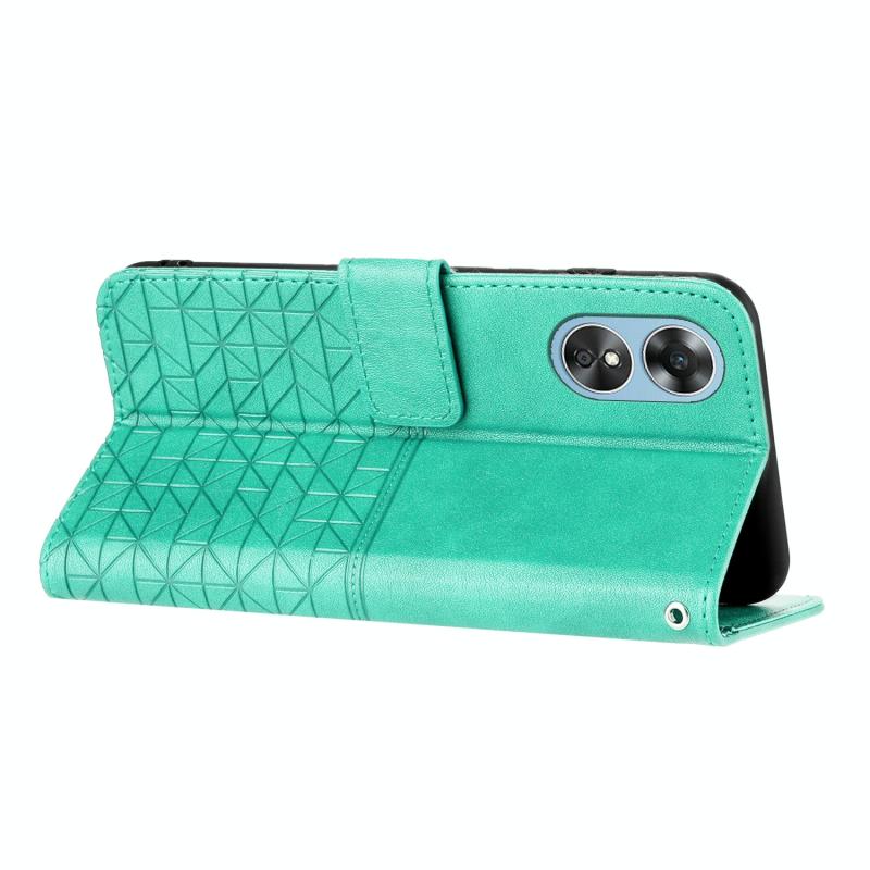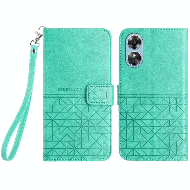 For OPPO A17 Rhombic Texture Leather Phone Case with Lanyard(Green)
