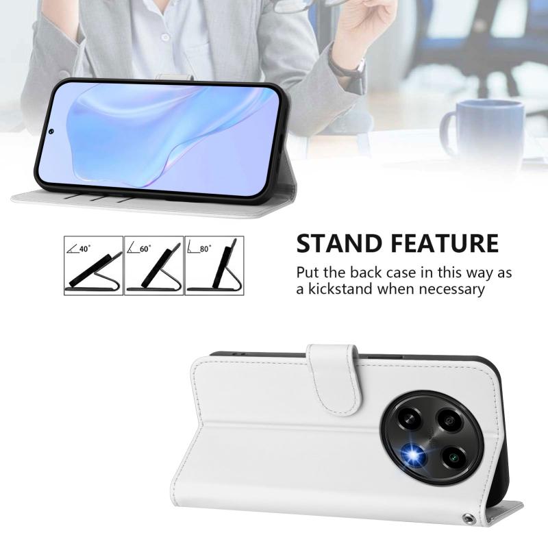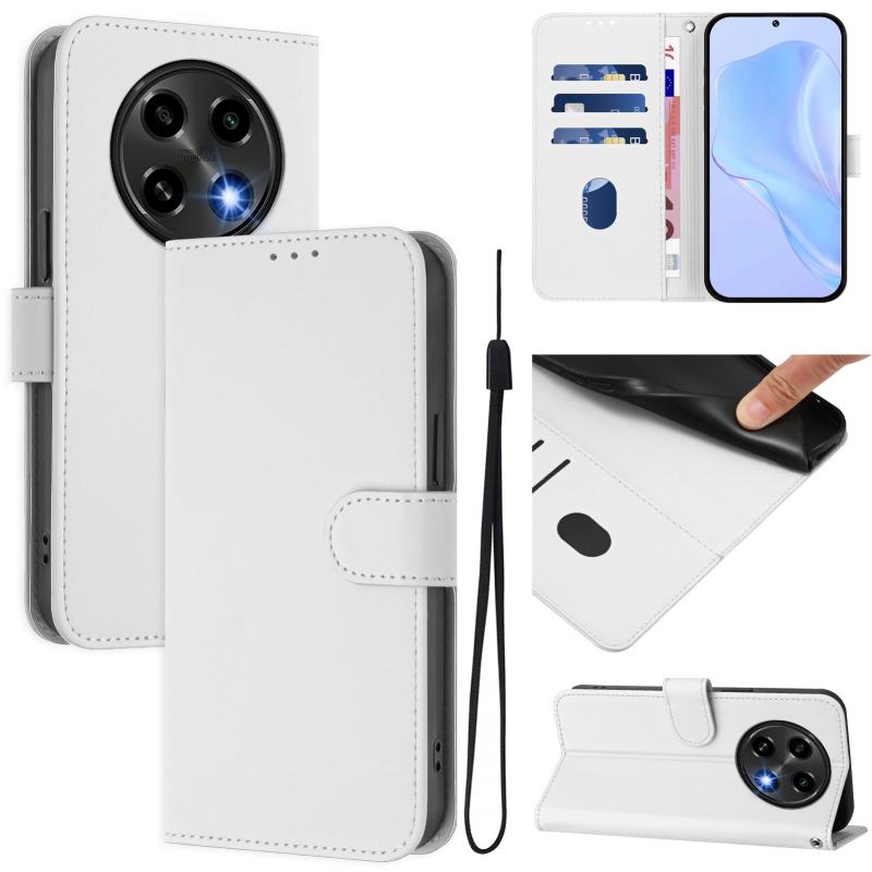 For OPPO A2 Pro 5G Global Skin Feel Solid Color Leather Phone Case with Lanyard(White)