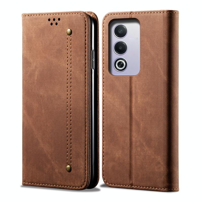 For OPPO A3 Pro 5G Global Denim Texture Casual Style Horizontal Flip Leather Case(Brown)