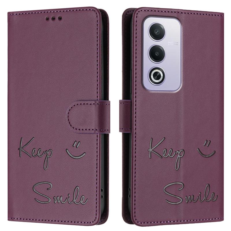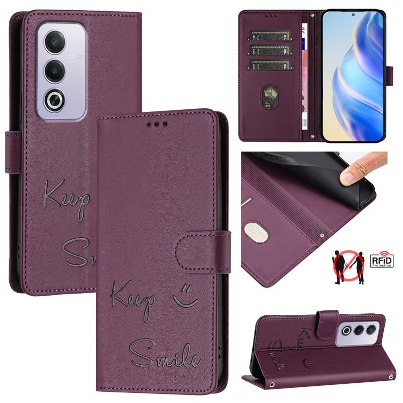 For OPPO A3 Pro 5G Global / India Smile Embossing RFID Leather Phone Case(Violet)