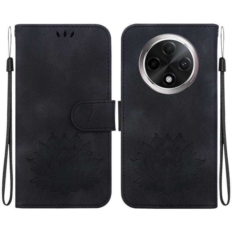For OPPO A3 Pro 5G Lotus Embossed Leather Phone Case(Black)