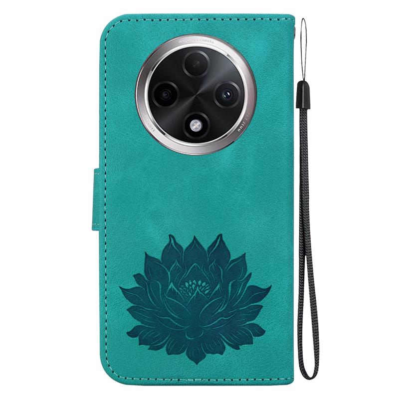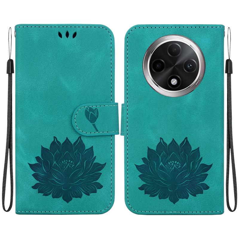For OPPO A3 Pro 5G Lotus Embossed Leather Phone Case(Green)