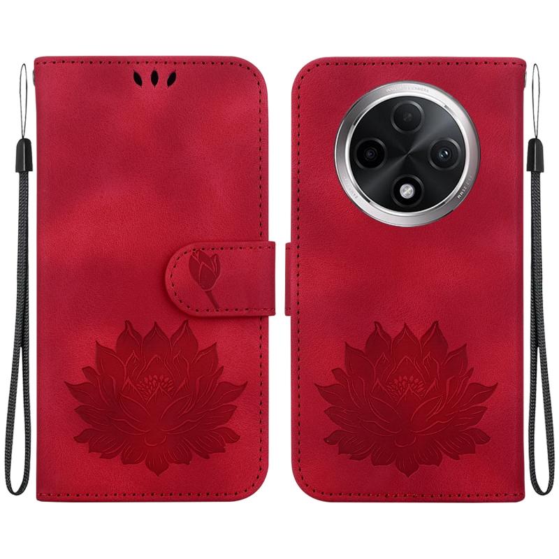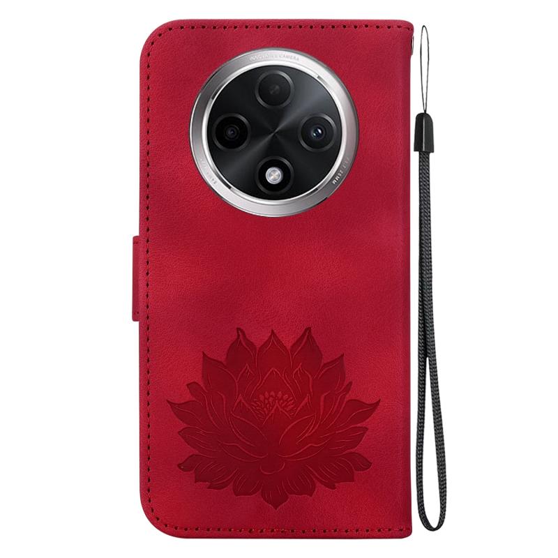 For OPPO A3 Pro 5G Lotus Embossed Leather Phone Case(Red)