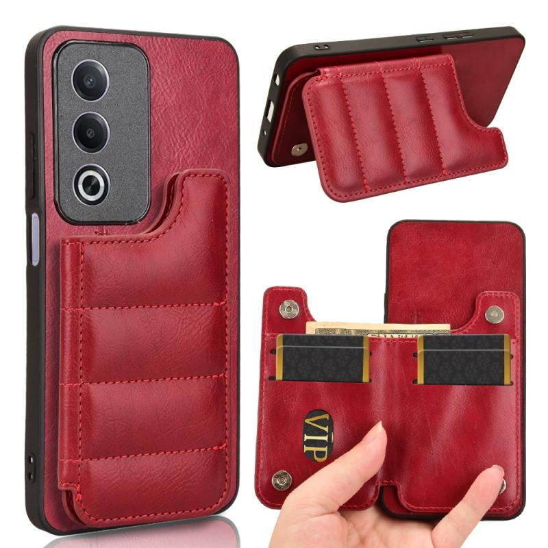 For OPPO A3 Pro India Cow Pattern Sewing Card Bag Phone Case(Red)