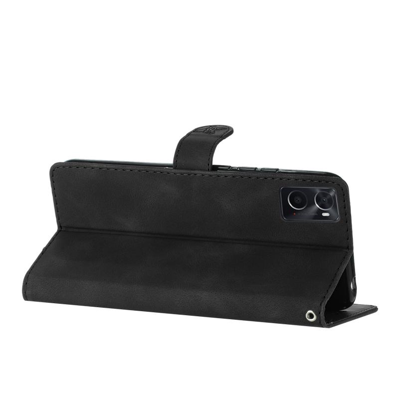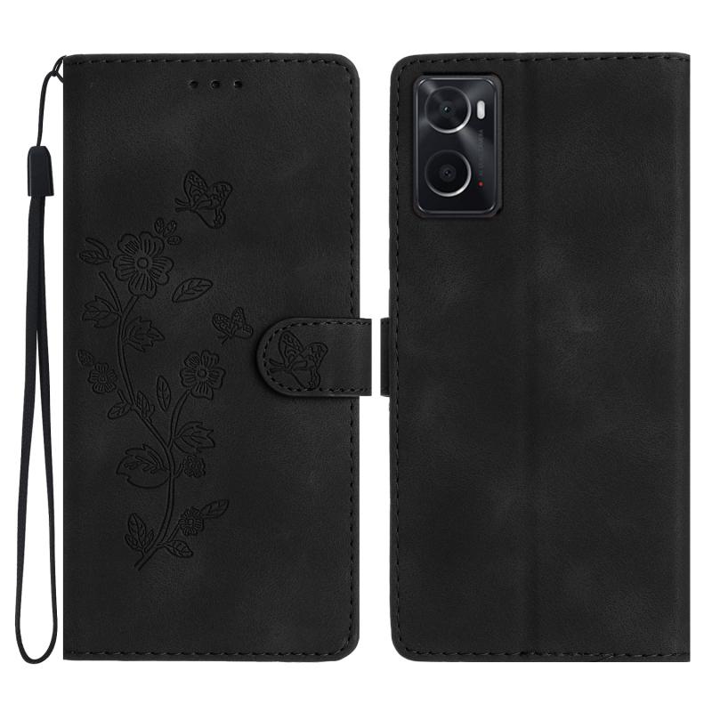 For OPPO A36 / A76 / A96 Flower Butterfly Embossing Pattern Leather Phone Case(Black)
