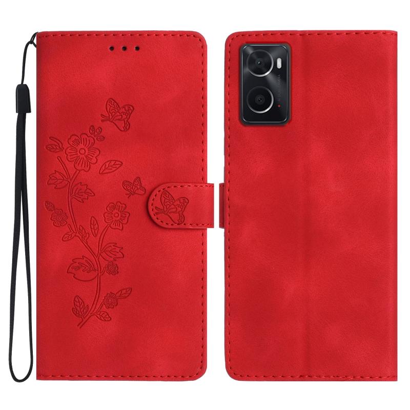For OPPO A36 / A76 / A96 Flower Butterfly Embossing Pattern Leather Phone Case(Red)