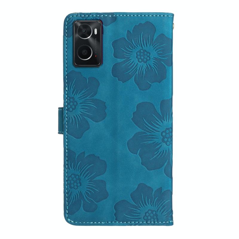 For OPPO A36 / A76 / A96 Flower Embossing Pattern Leather Phone Case(Blue)