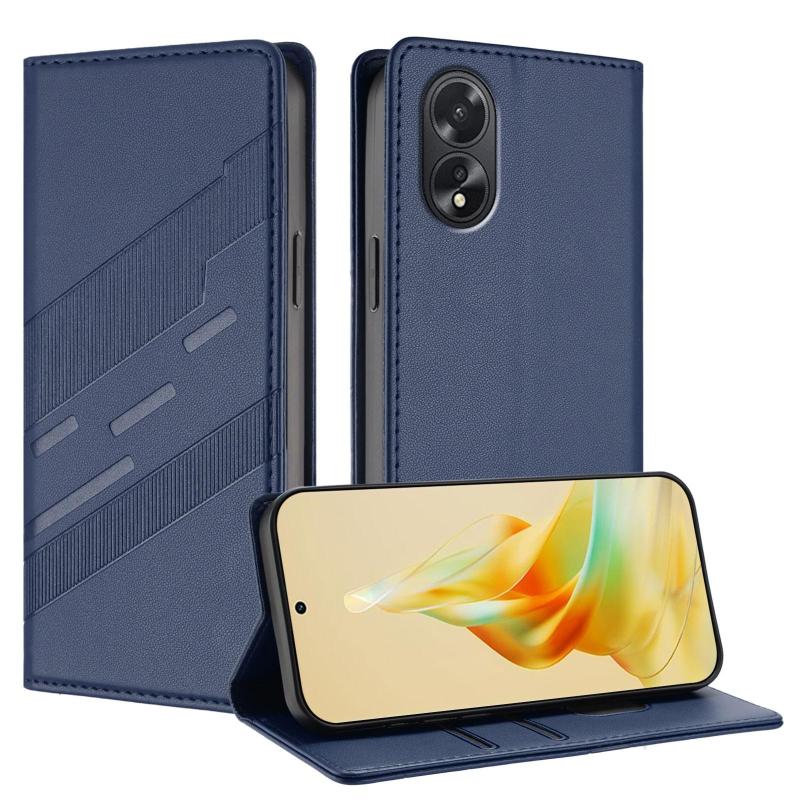 For OPPO A38 4G Embossed Multi-functional Wallet Retro Leather Phone Case(Dark Blue)