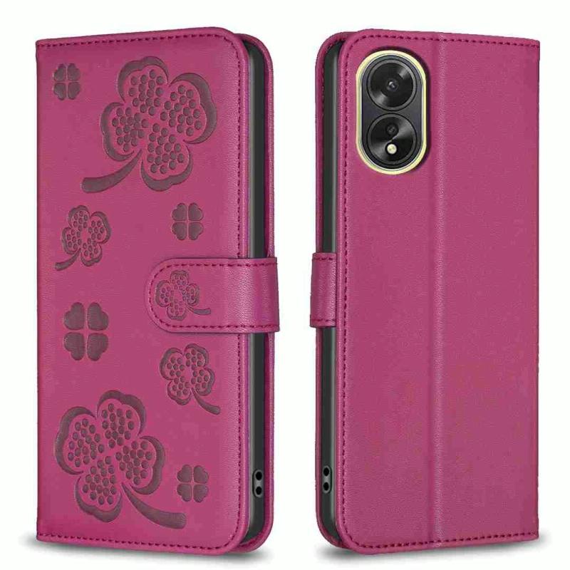 For OPPO A38 / A18 4G Four-leaf Embossed Leather Phone Case(Rose Red)