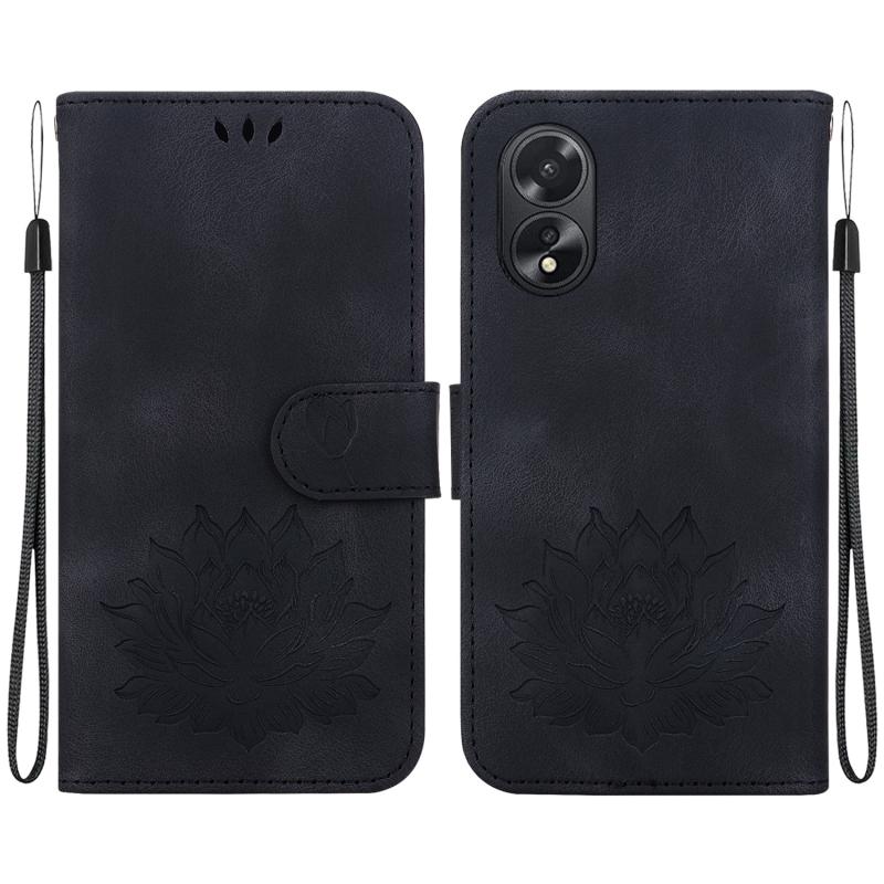 For OPPO A38 / A18 Lotus Embossed Leather Phone Case(Black)