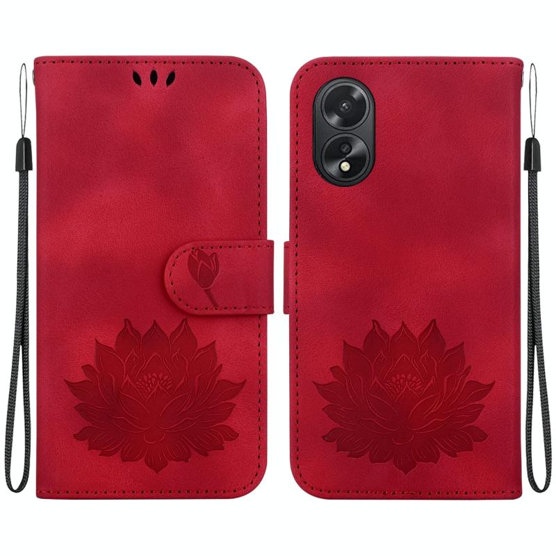 For OPPO A38 / A18 Lotus Embossed Leather Phone Case(Red)