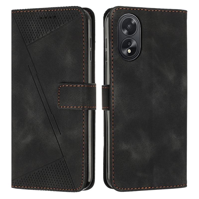 For OPPO A38 Dream Triangle Leather Phone Case with Lanyard(Black)