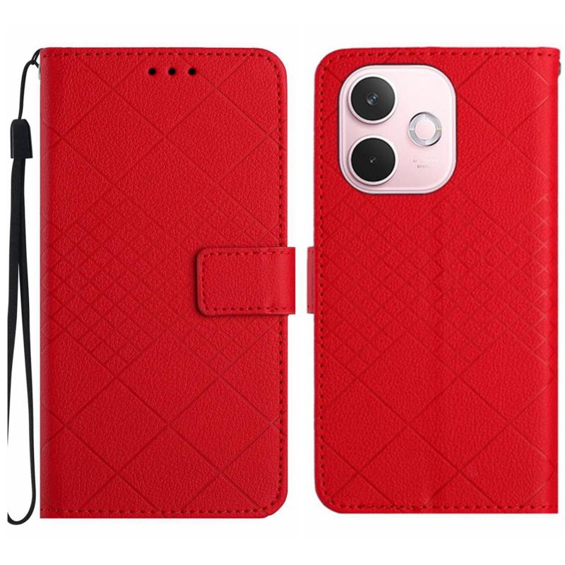 For OPPO A5 Pro 5G Global Rhombic Grid Texture Leather Phone Case(Red)