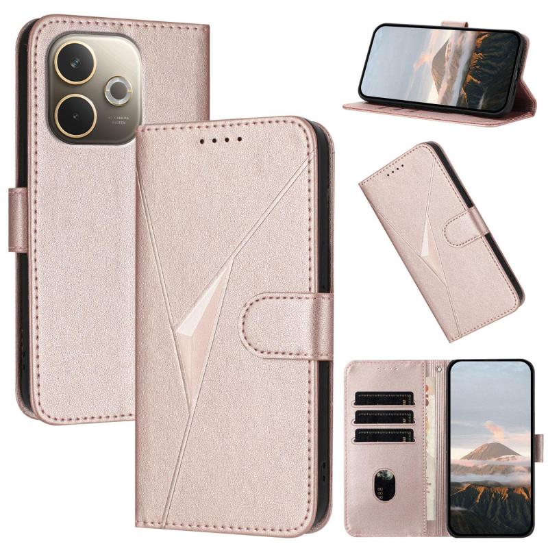 For OPPO A5 Pro 5G Triangle Pattern Buckle Clasp Leather Phone Case(Rose Gold)