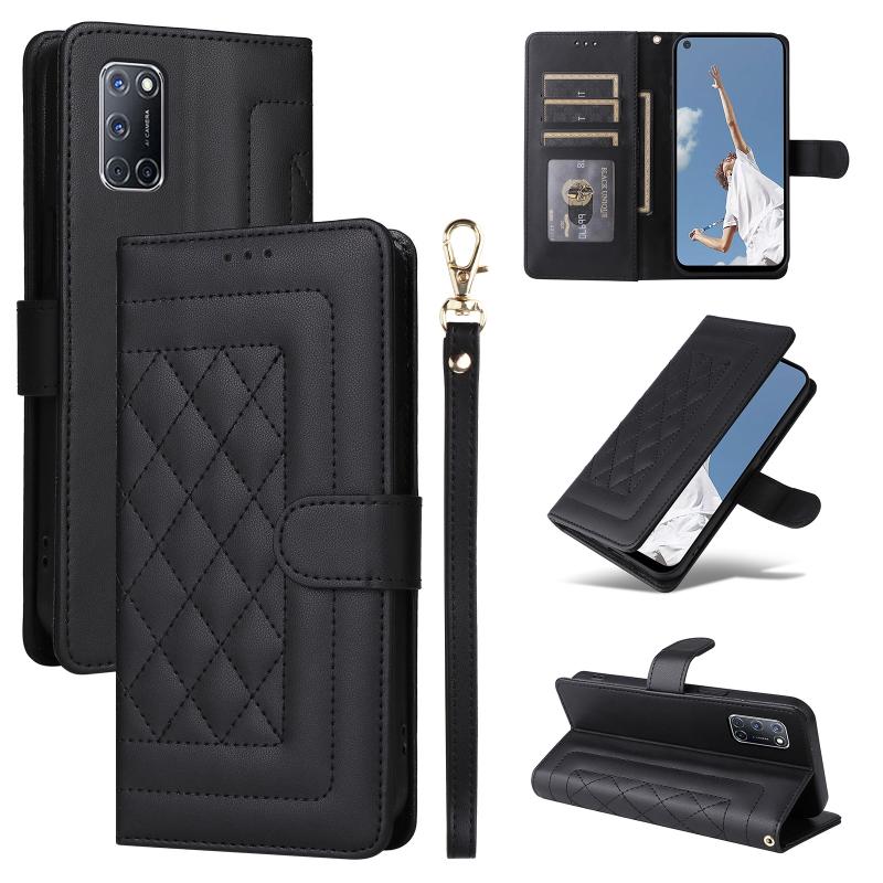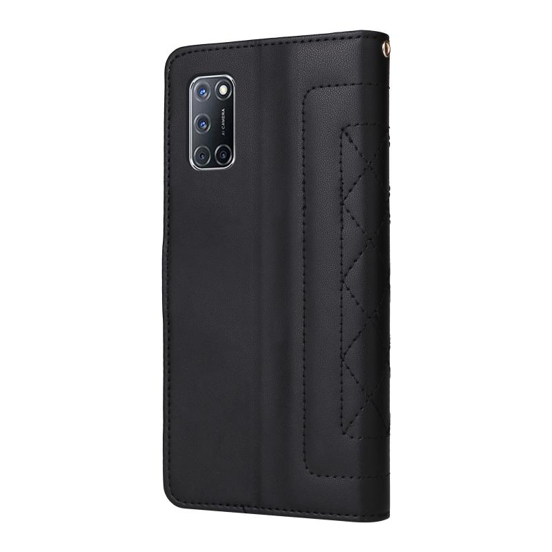 For OPPO A52 / A72 / A92 Diamond Lattice Leather Flip Phone Case(Black)