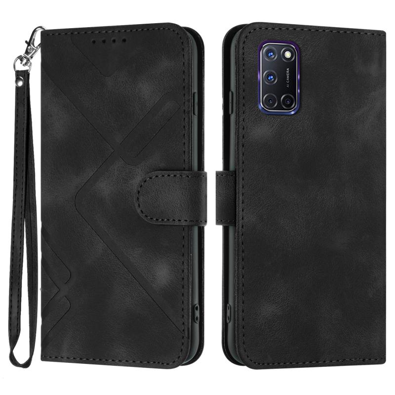 For OPPO A52 / A72 / A92 Line Pattern Skin Feel Leather Phone Case(Black)