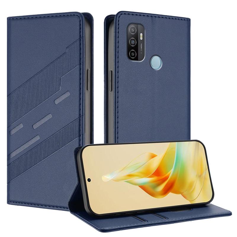 For OPPO A53 4G Embossed Multi-functional Wallet Retro Leather Phone Case(Dark Blue)