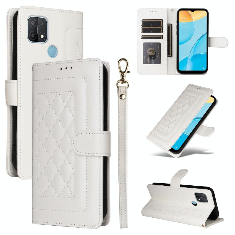 For OPPO A53 / A53s Diamond Lattice Leather Flip Phone Case(White)