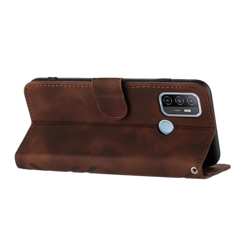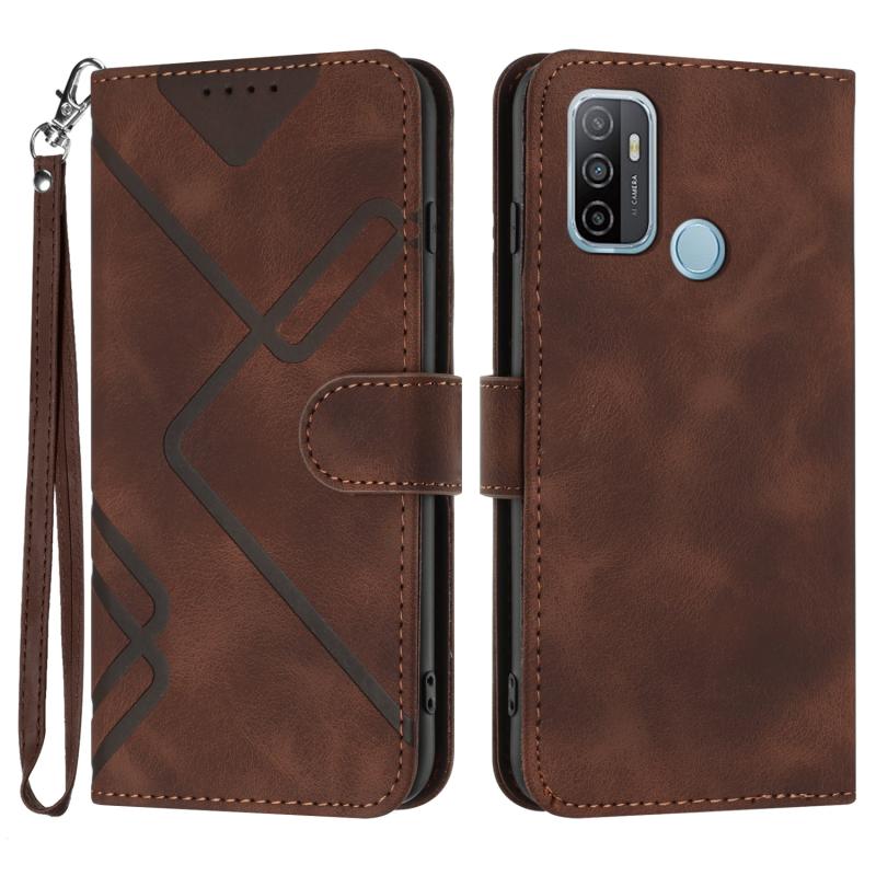 For OPPO A53s / A32 / A53 Line Pattern Skin Feel Leather Phone Case(Coffee)